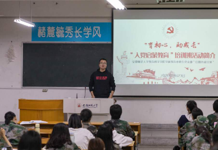 为加强学生对团组织认知,提升作为中国共青团组织一员的荣誉感与使命感,学院组织全体新生第一次团日活动。通过团歌与校歌的教唱以及教科院团委书记程啸老师对共青团的深入讲解,达到引领青年学生端正思想、努力学习、争做时代新青年的目标。中国共青团是中国共产党的后备军,为帮助20级新生更好地了解中国共产党,激发对党组织的向往与端正入党动机,教科院组织开展了各专业“入党启蒙教育”,推动学院党建工作的开展。各专业党支部书记及支委会成员分别向新生宣讲了入党启蒙教育的各项内容,并有17、18级优秀党员同学分享学习经验和入党经验,鼓励新生积极学习党的相关理论知识,端正新生的入党动机,不断提升思想理论素养和坚定理想信念,帮助新生在追求发展的过程中能够做到组织上与思想上同步入党。