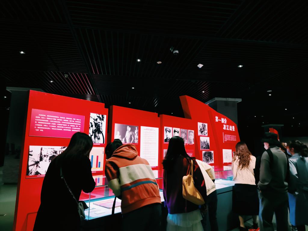 学生党员们跟随着讲解员回顾往昔,感慨万千。芜湖的十里长街和芜湖米市真实地再现了芜湖当年的繁华,繁昌人字洞再现了220万年前古人类的生活,南陵大工山显现了铜矿的开采和青铜的冶炼,长岸之战展示了春秋时期吴国与楚国的作战等等内容让我们印象深刻。尤其是渡江战役真实地再现了渡江第一船在繁昌夏家湖的登陆。改革开放四十多年,芜湖发生了翻天覆地的变化,从一个个小村落发展成一座时尚都市,芜湖的发展离不开中国共产党的领导,更离不开无数先人们的贡献和牺牲。