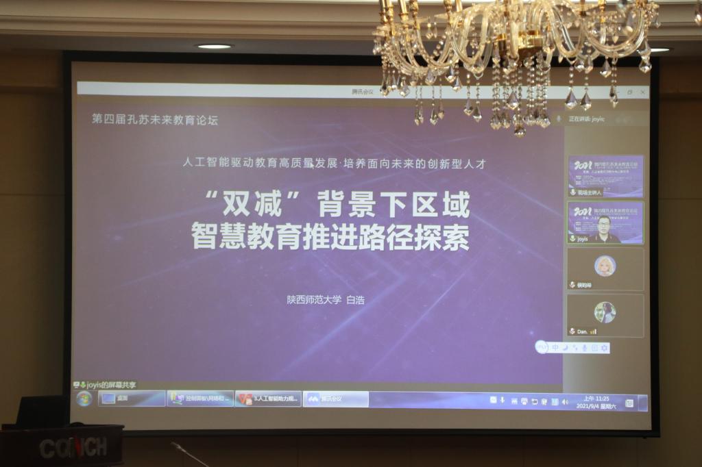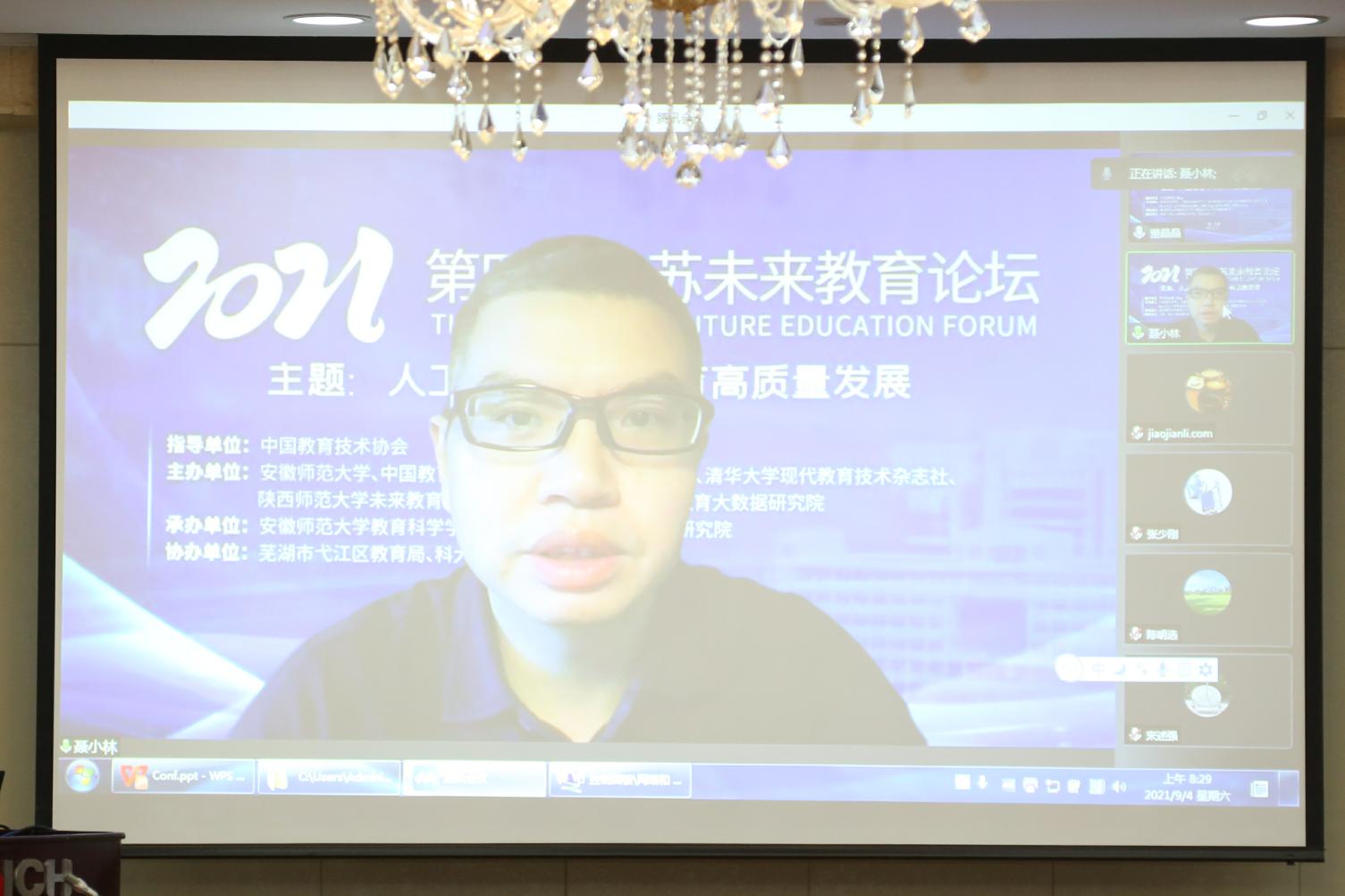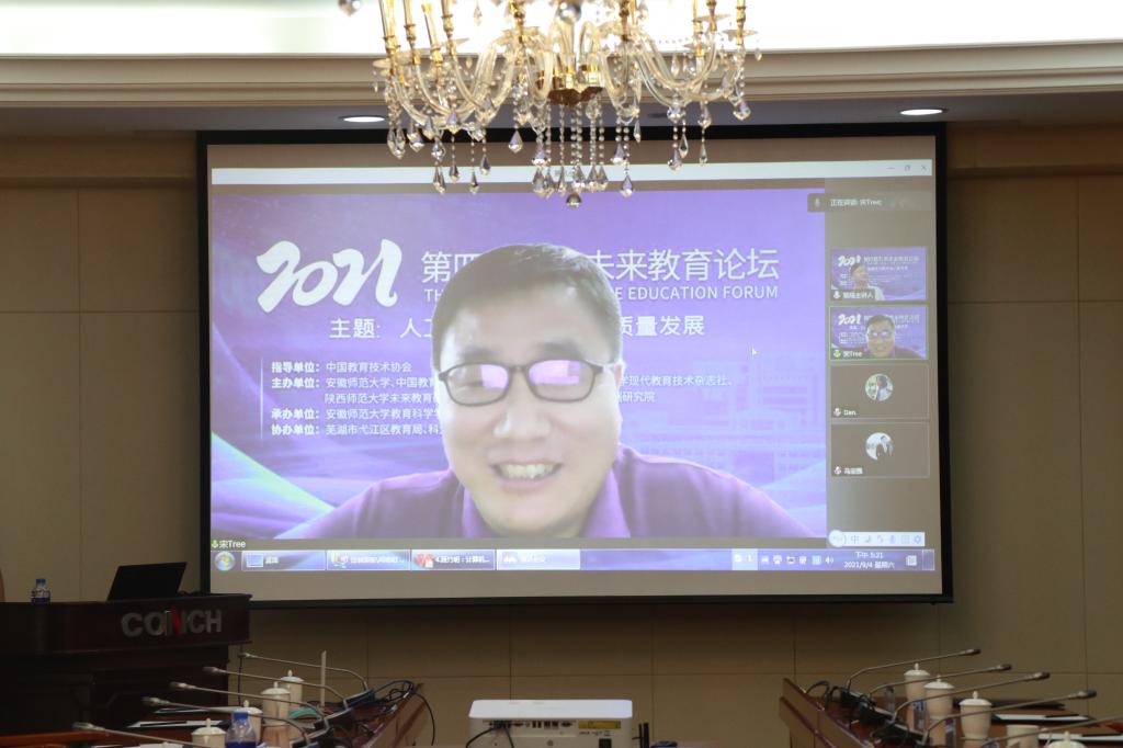 本网讯(教育科学学院 白倩 孟庆娟)2021年9月3日-4日,由中国教育技术协会指导,中国教育技术协会人工智能专业委员会、清华大学现代教育技术杂志社、陕西师范大学未来教育研究中心、曲阜师范大学中国教育大数据研究院和安徽师范大学主办,安徽金年会、智能教育研究院承办,芜湖市弋江区教育局、科大讯飞股份有限公司协办的第四届孔苏未来教育论坛在我校隆重召开。本届论坛以“人工智能助力教育高质量发展”为主题。来自中国教育技术协会、清华大学、北京大学、武汉大学、中国科学技术大学、华中科技大学、合肥工业大学、东北师范大学、西北师范大学、江南大学、西南大学以及武汉市、蚌埠市、宣城市等地教育局的30余位专家学者在大会做专题报告。当天线上线下参会人近10000人次,两天内视频回放观看超过17万人次。
