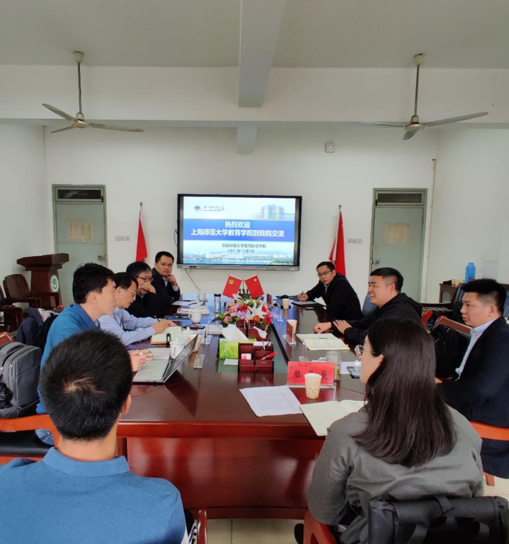 会议伊始,李宜江院长代表学院对来自上海师范大学教育系的老师们表示热烈欢迎,并介绍了我院的基本情况和发展规划。陈建华主任介绍了此行调研交流的目的和上海师范大学教育学专业办学的基本情况。他表示,安徽金年会历史悠久,教育学专业办学经验丰富,人才培养取得丰硕成果,希望借此交流机会能学习借鉴我院在专业建设和师范专业认证方面的宝贵经验。
