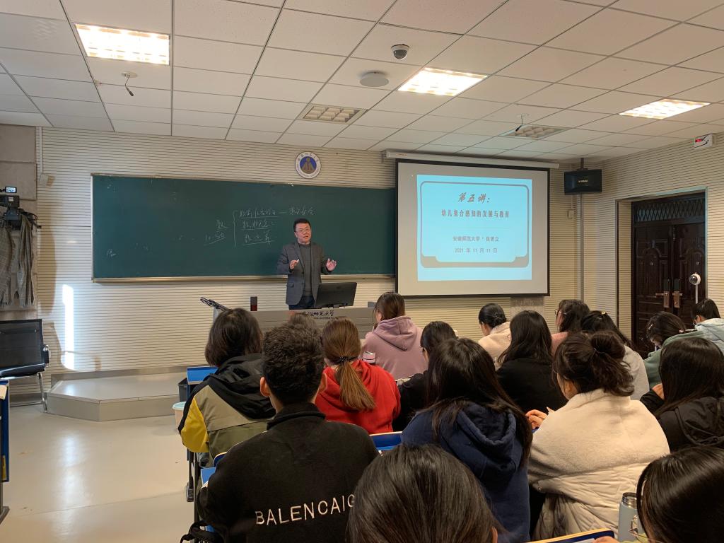 本网讯(教科院 占淑玮)2021年11月11日上午,我院张更立教授在赭山校区田家炳教育书院8607教室为师生们呈现了一堂精彩的《学前儿童数学教育》校级观摩课,教学内容是“幼儿集合感知的发展与教育”,授课对象为2019级学前教育专业1班学生。教务处领导、校院教学督导团专家、学院领导、学前教育专业教师及学院部分中青年教师共同观摩了此次教学示范观摩课。