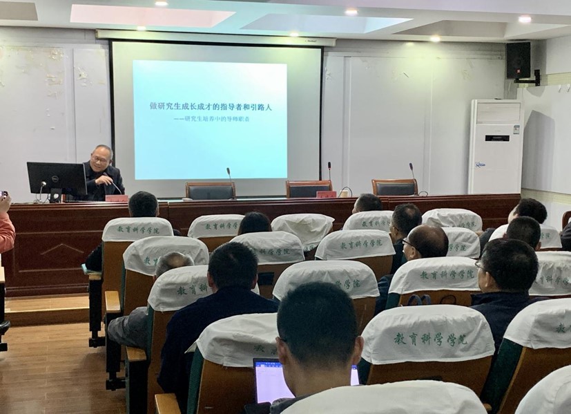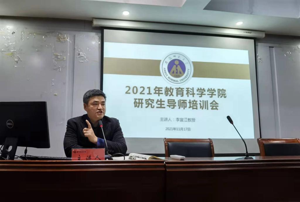 本网讯(文/牛雪梅 图/孙瑜瑶)11月17日下午2点,教育科学学院2021年研究生导师培训会在学术交流中心举行,学院教授委员会主任、博士生导师周兴国,学院院长、博士生导师李宜江担任本次培训的主讲人。本次培训由研究生工作分管院长张更立主持,我院全体研究生导师参加培训。