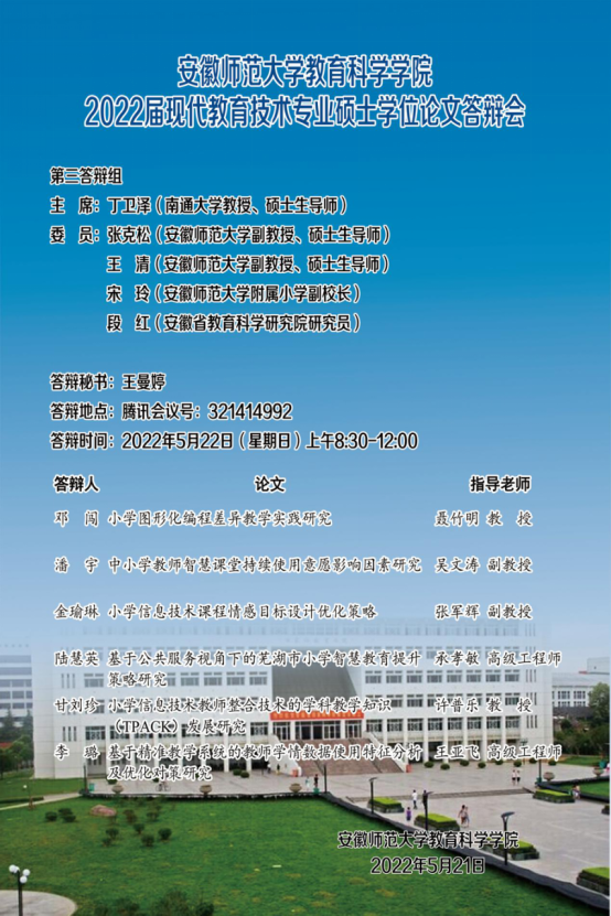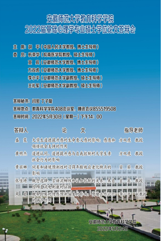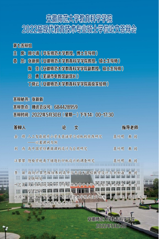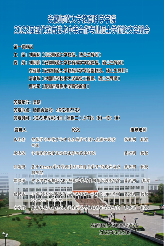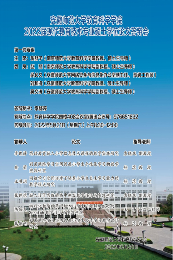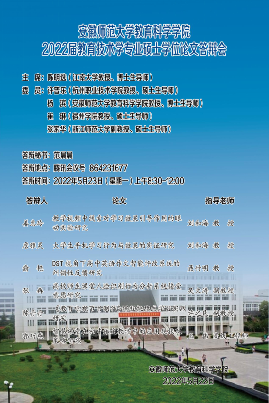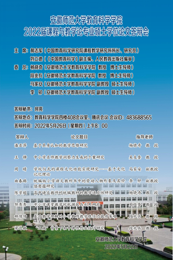 教育科学学院2022年上半年硕士研究生学位论文答辩公告(一)