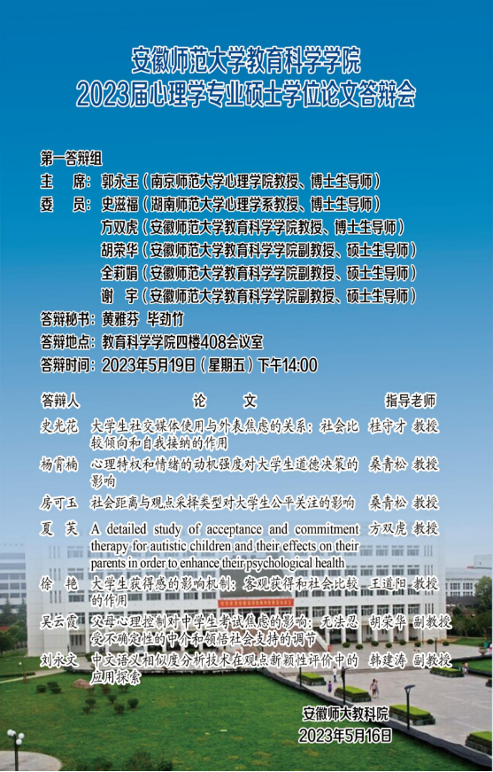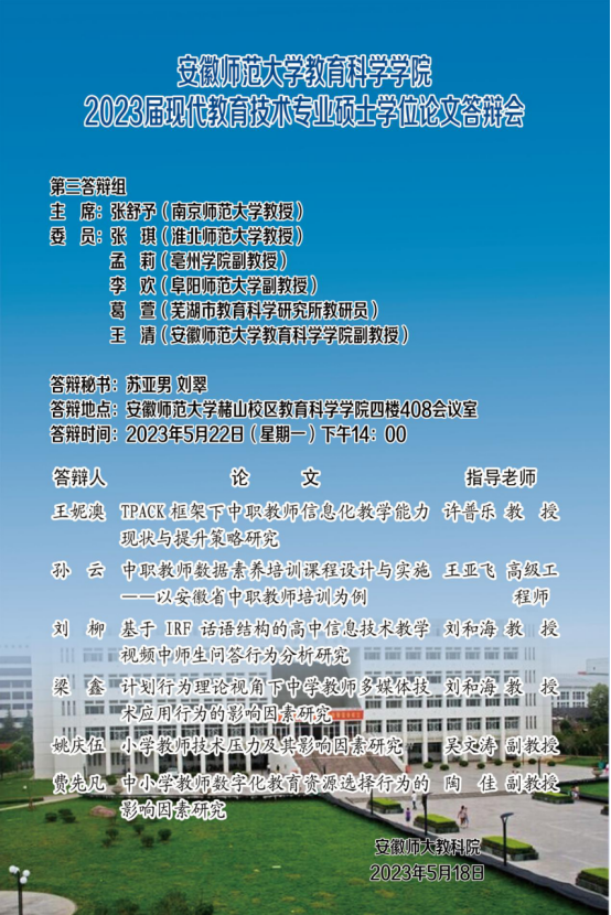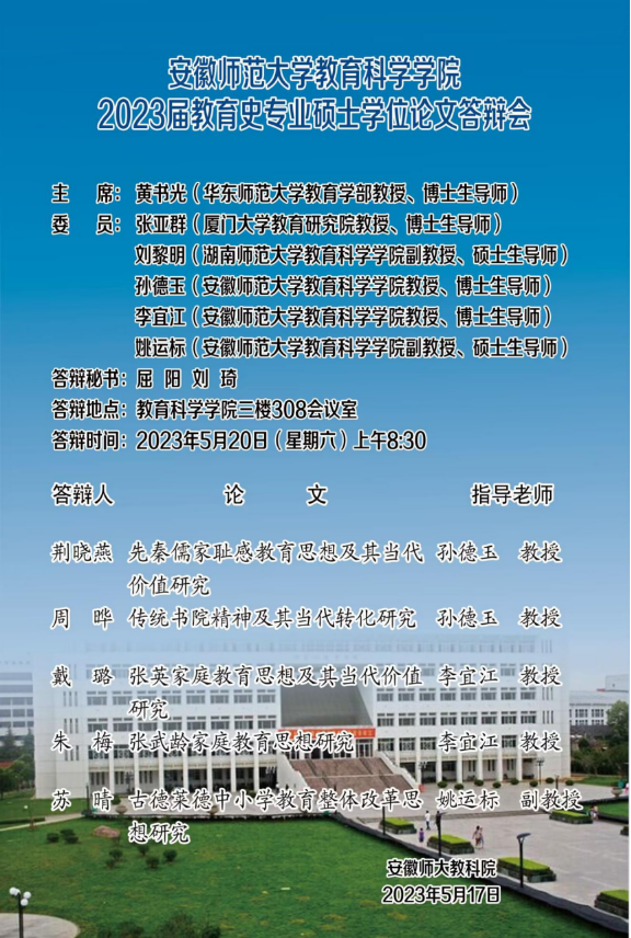 教育科学学院2023年上半年硕士研究生学位论文答辩公告(二)