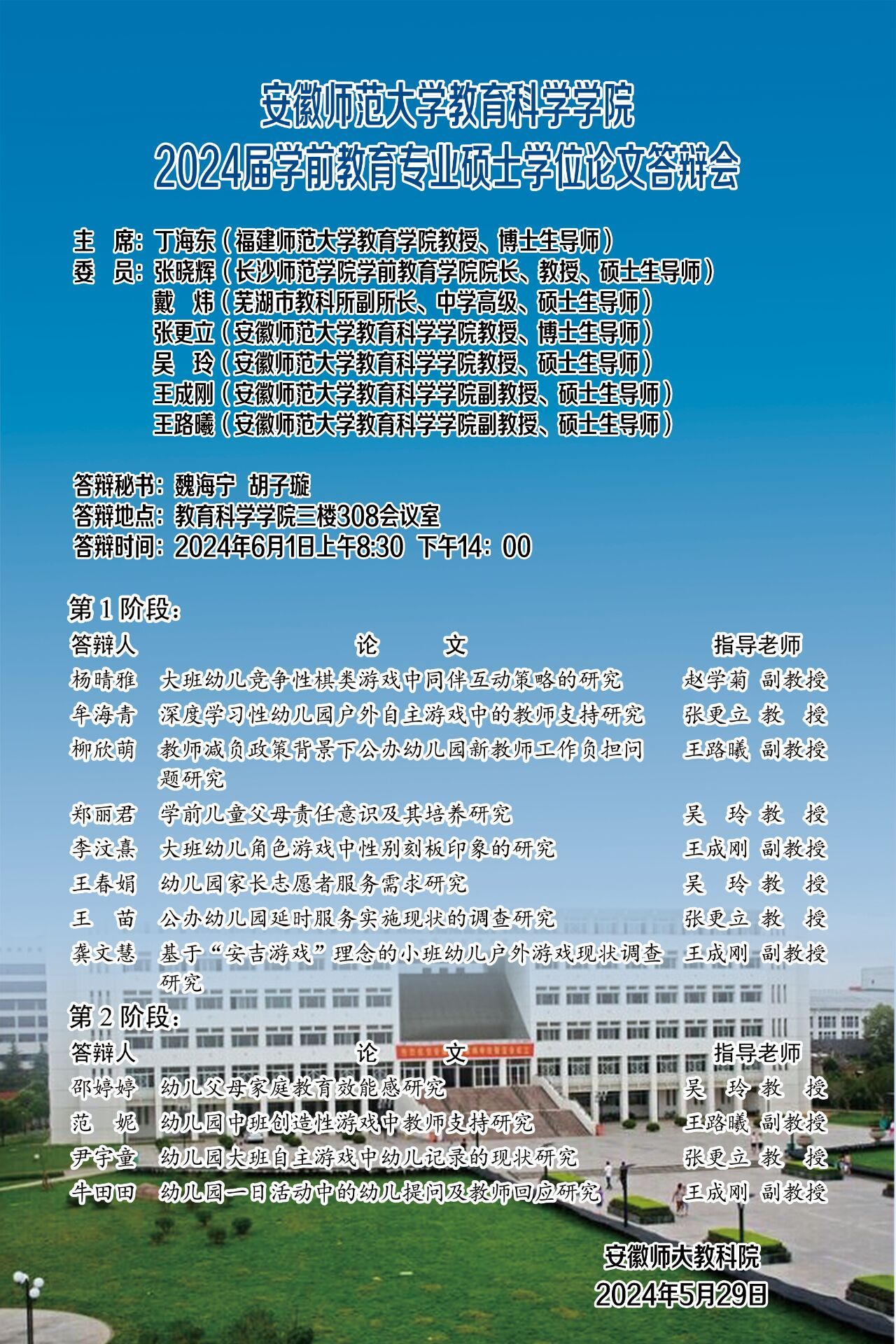 教育科学学院2024年上半年硕士研究生学位论文答辩公告(二)