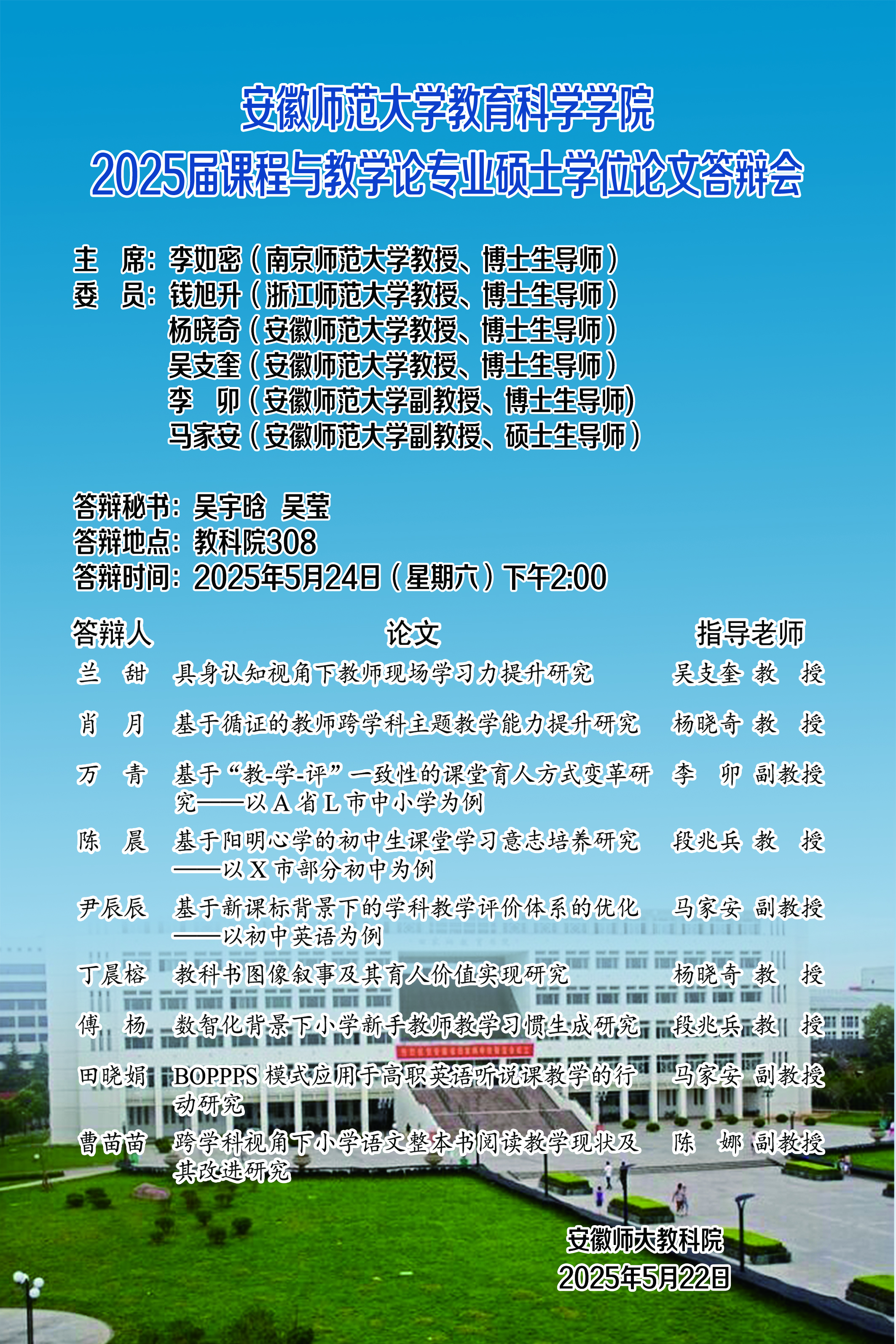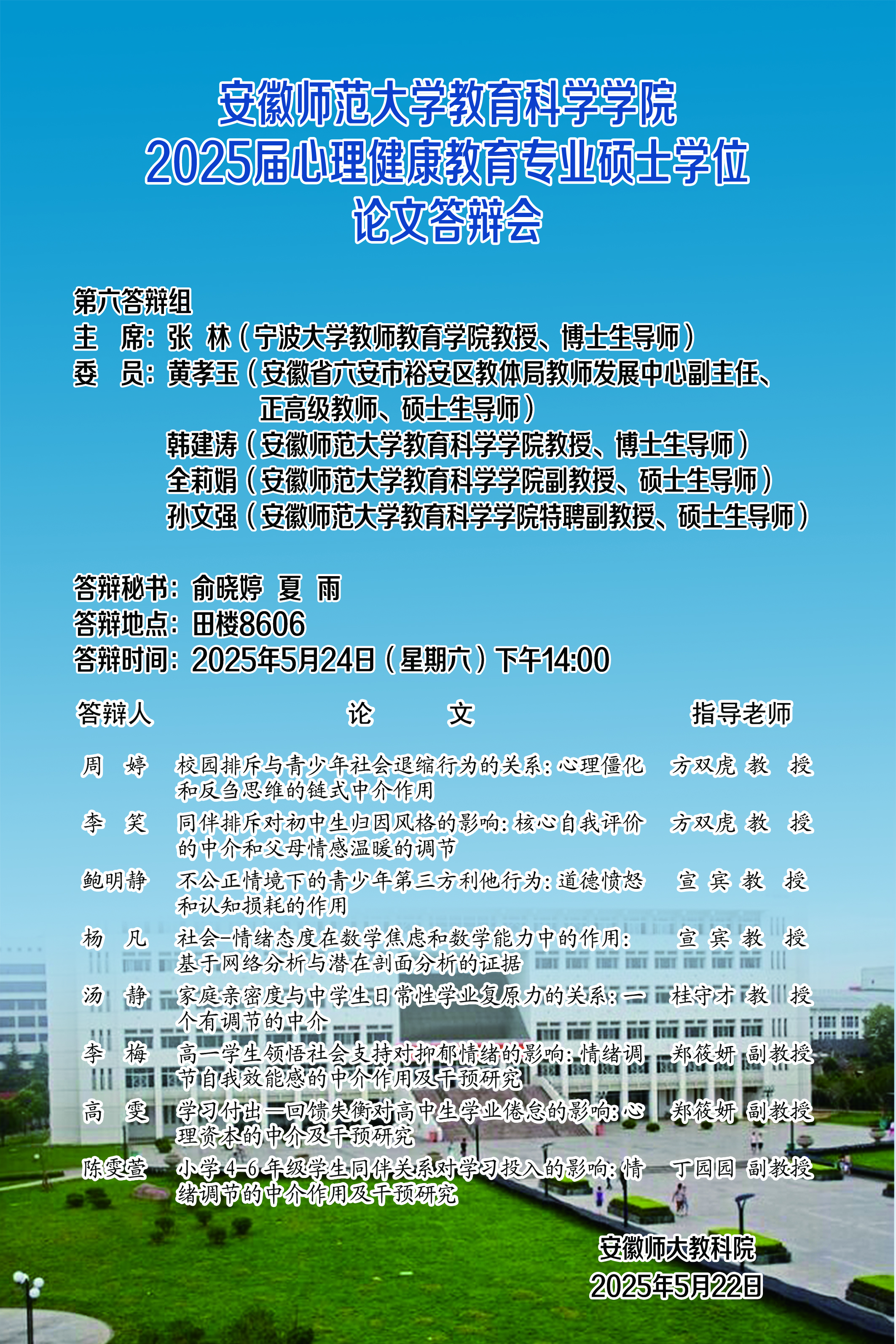 教育科学学院2025年上半年硕士研究生学位论文答辩公告(二)