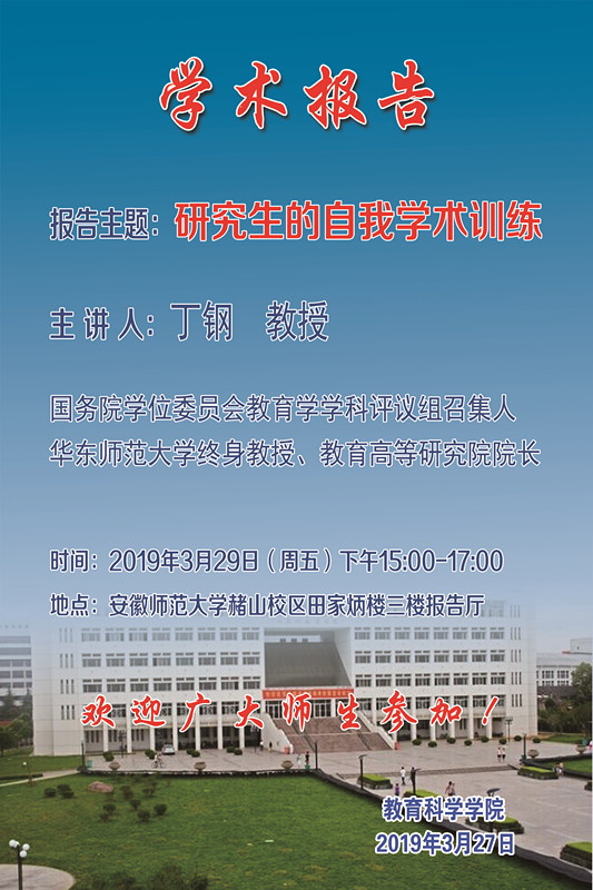 学术报告预告——华东师范大学终身教授丁钢:研究生的自我学术训练