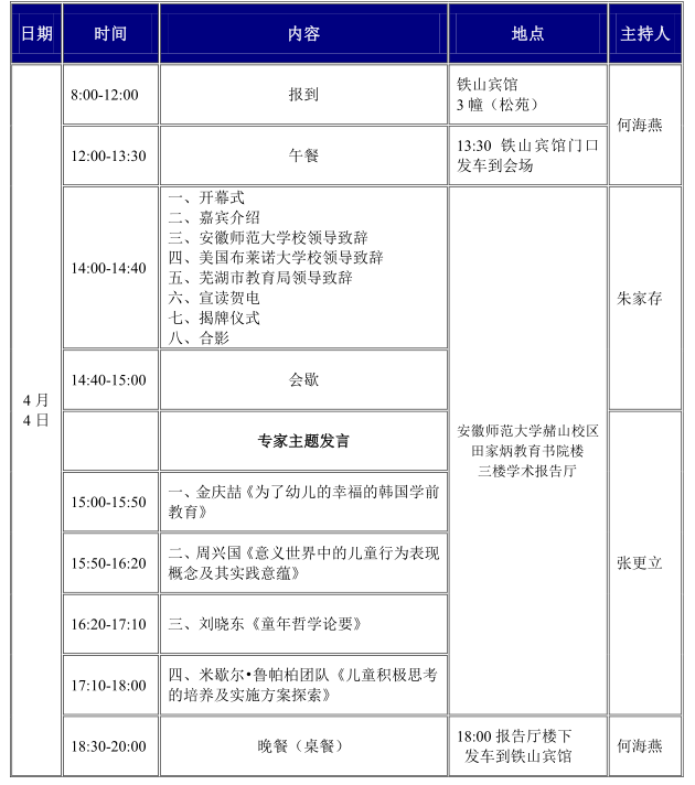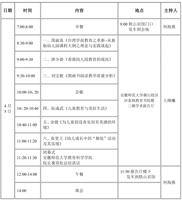 学前教育国际学术研讨会暨安徽师范大学学前教育学院成立揭牌仪式会议日程