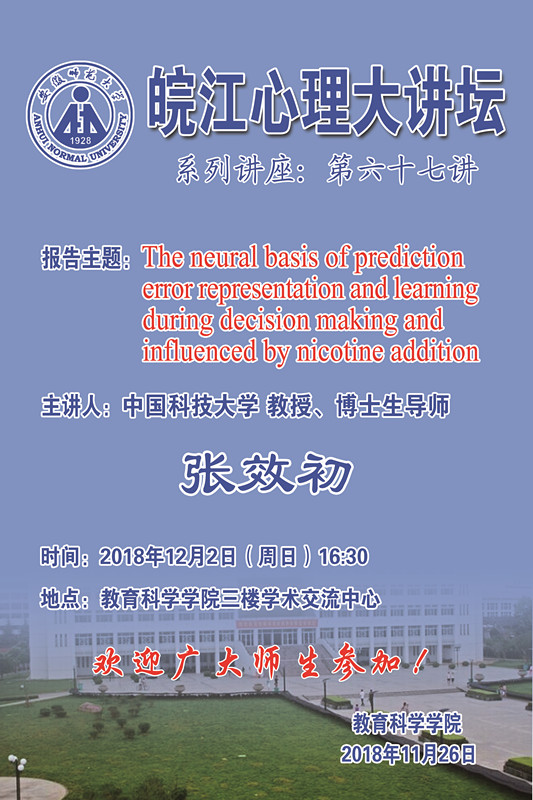 学术报告预告——皖江心理大讲坛第67讲