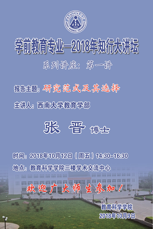 学术报告预告:学前教育专业—2018年知行大讲坛(一)研究范式及其选择
