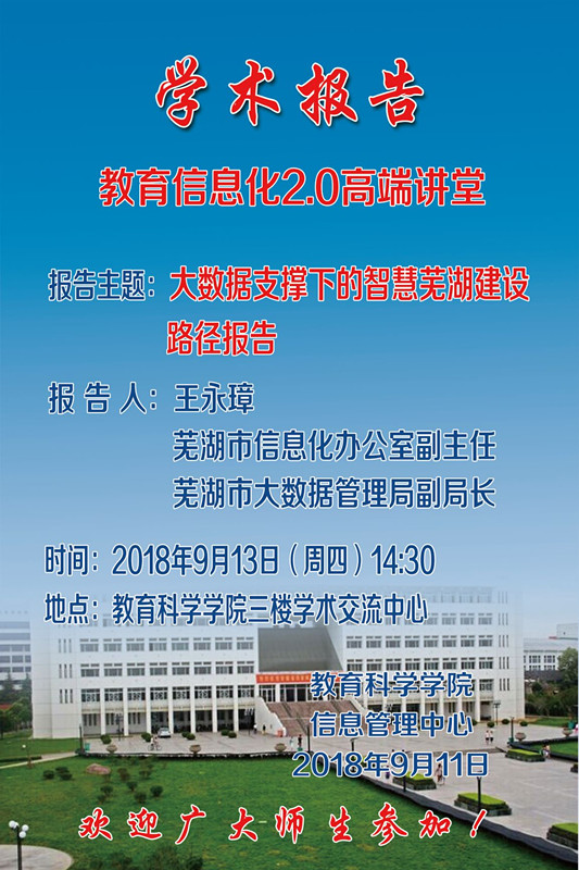 学术报告预告:大数据支撑下的智慧芜湖建设路径报告