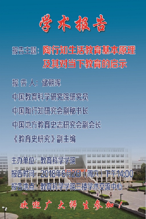学术报告预告:陶行知生活教育基本原理及其对当下教育的启示