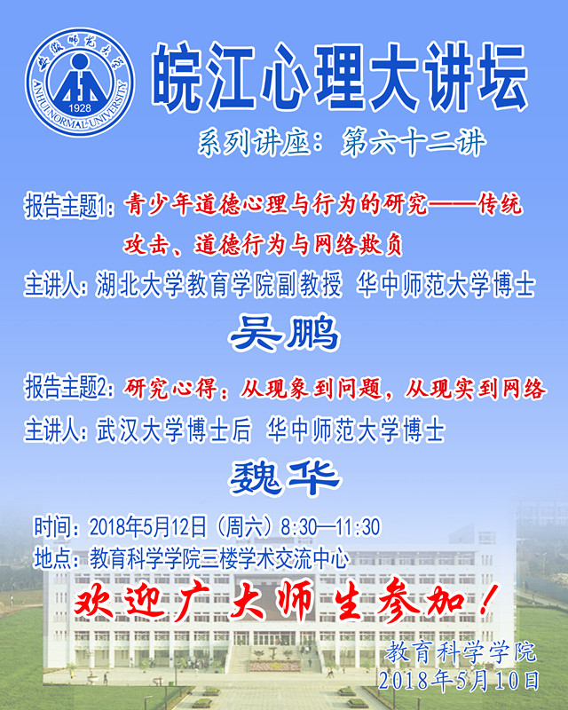 教育科学学院学术报告预告——皖江心理大讲坛第62讲