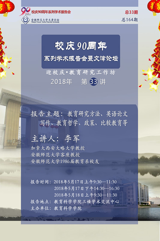 【校庆系列学术报告暨文津论坛】第33讲:李军报告——教育研究方法、英语论文写作、教育哲学、政策、比较教育等
