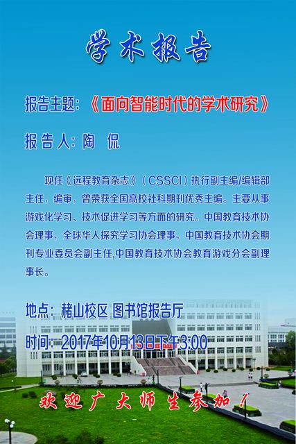 学术报告预告:陶侃《面向智能时代的学术研究》