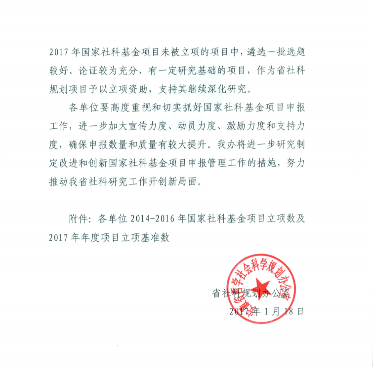 【科研通知】省社科办《关于促进做好2017年度国家社科基金项目申报工作的通知》