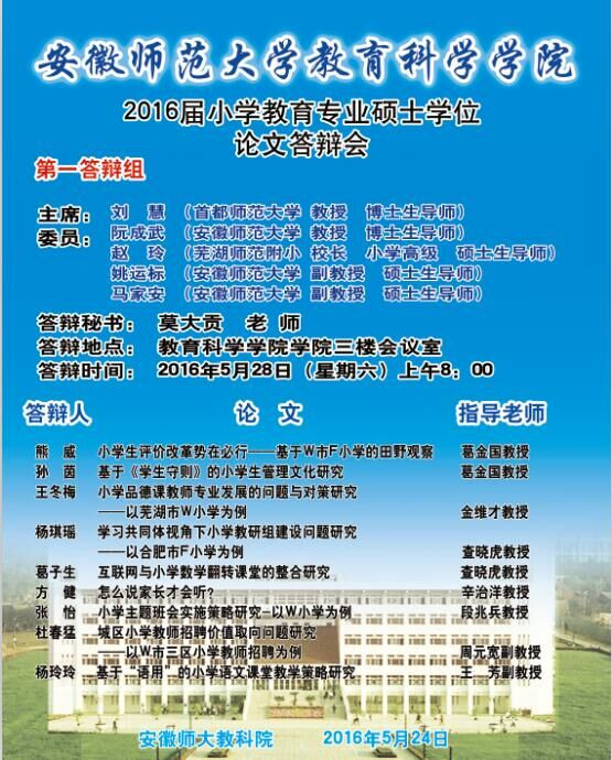 【研究生论文答辩】2016届小学教育专业硕士学位论文答辩会