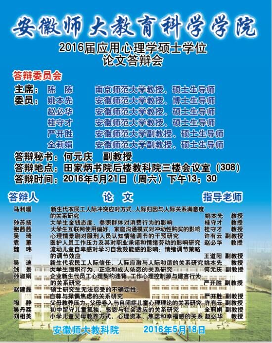 【研究生论文答辩】2016届应用心理学硕士学位论文答辩会
