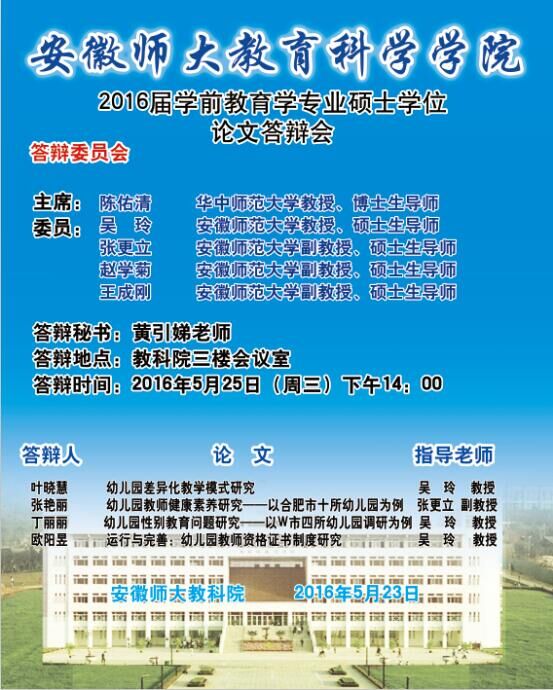 【研究生论文答辩】2016届学前教育学硕士学位论文答辩会