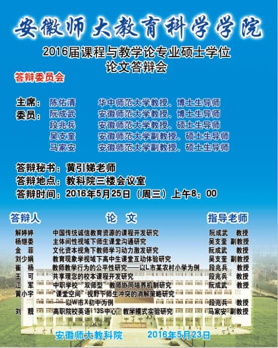 【研究生论文答辩】2016届课程与教学论硕士学位论文答辩会