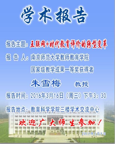 学术报告预告——南京师范大学教师教育学院朱雪梅教授讲座预告