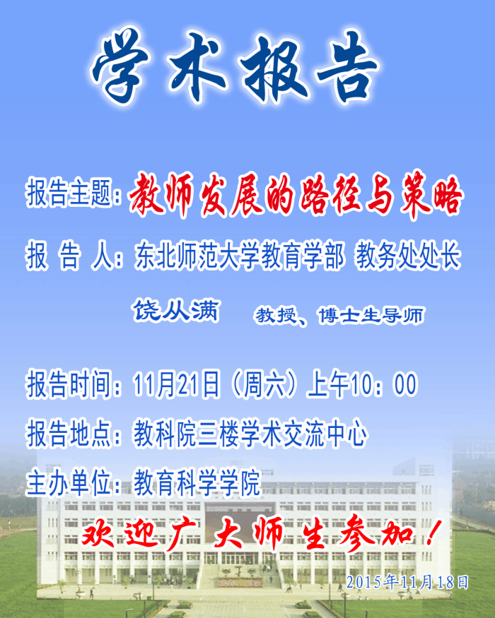 学术报告预告——东北师范大学博士生导师饶从满讲学预告