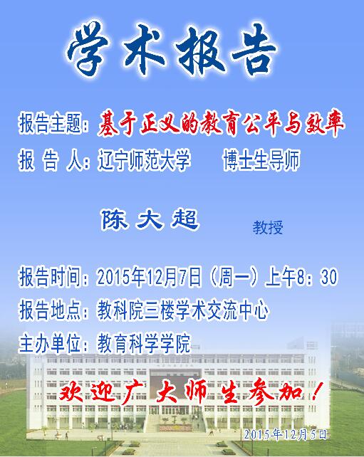 学术报告预告——辽宁师范大学博士生导师陈大超教授讲学预告