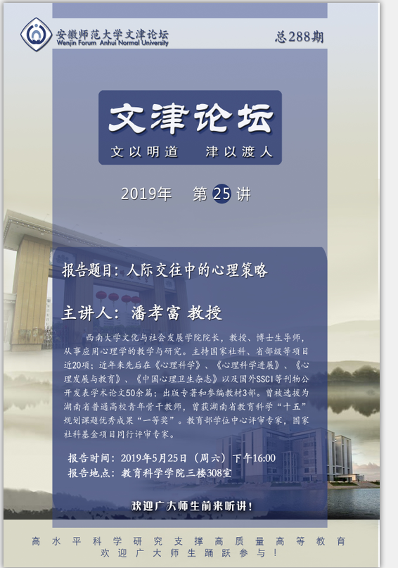 学术报告预告——潘孝富:人际交往中的心理策略