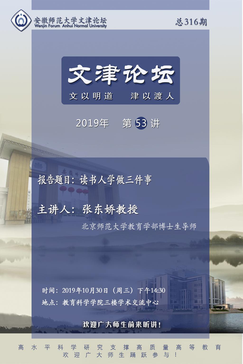 学术报告预告:北京师范大学张东娇教授——读书人学做三件事