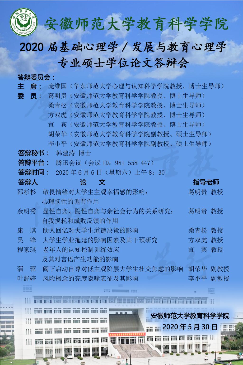 安徽金年会2020届基础心理学/发展与教育心理学专业硕士学位论文答辩会