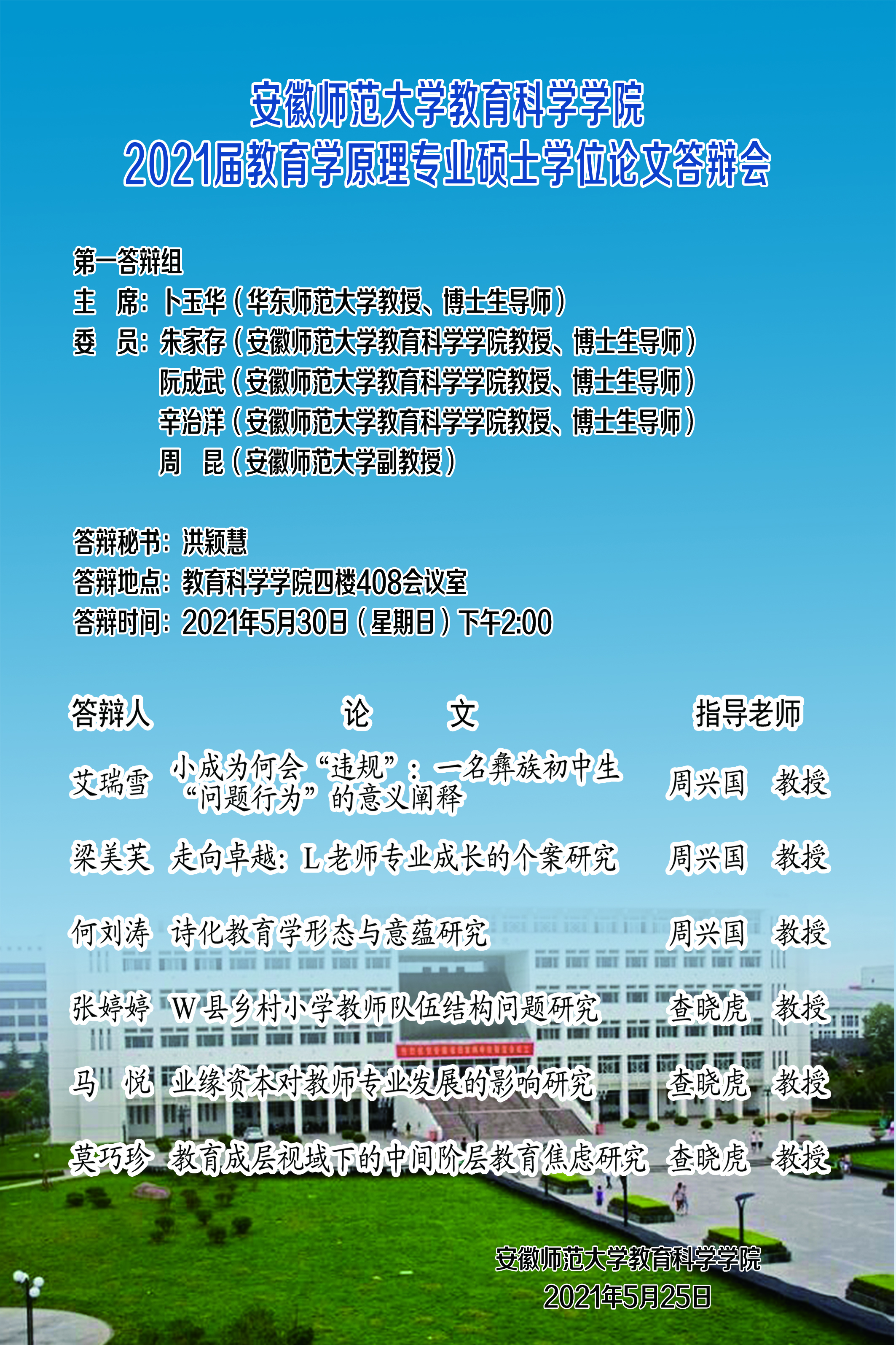 安徽金年会2021届教育学原理专业硕士学位论文答辩会