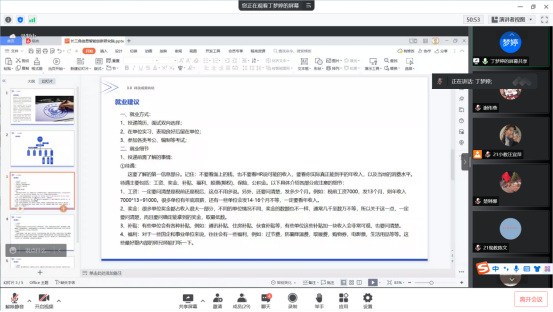 5月29日晚,学院通过腾讯会议平台针对2022届毕业生们开展了小学教育与现代教育技术专场就业指导分享会,研究生辅导员谭茹轩参加了此次会议,近30名硕士研究生在线交流学习,分享会由院研究生会校友部成员汪宜萍主持。