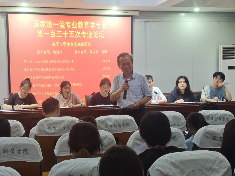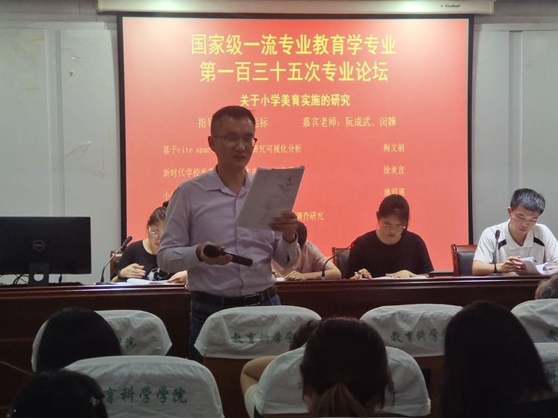 本网讯(文/谢雅雯 图/张思雪)6月5日晚,国家级一流本科专业建设点教育学专业在教育科学学院三楼学术交流中心顺利举办第一百三十五次专业论坛。莅临本次专业论坛有小组指导教师姚运标以及嘉宾教师阮成武和闵韡,19级、20级教育学专业全体本科生及21级部分教育学类专业本科生到场参加,并由19级教育学赵一苇担任主持人。