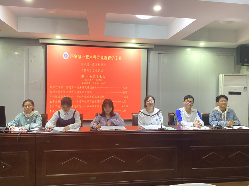 本网讯(文/谢雅雯 乔琳颖 图/谢雅雯)10月9日晚,在教育科学学院三楼学术交流中心,国家级一流本科专业建设点教育学专业顺利举办第一百三十七次专业论坛。莅临本次专业论坛有小组指导教师路宝利以及嘉宾教师柳丽娜和马兴,20级、21级教育学专业全体本科生到场参加,并由20级教育学王悦晓担任主持人。