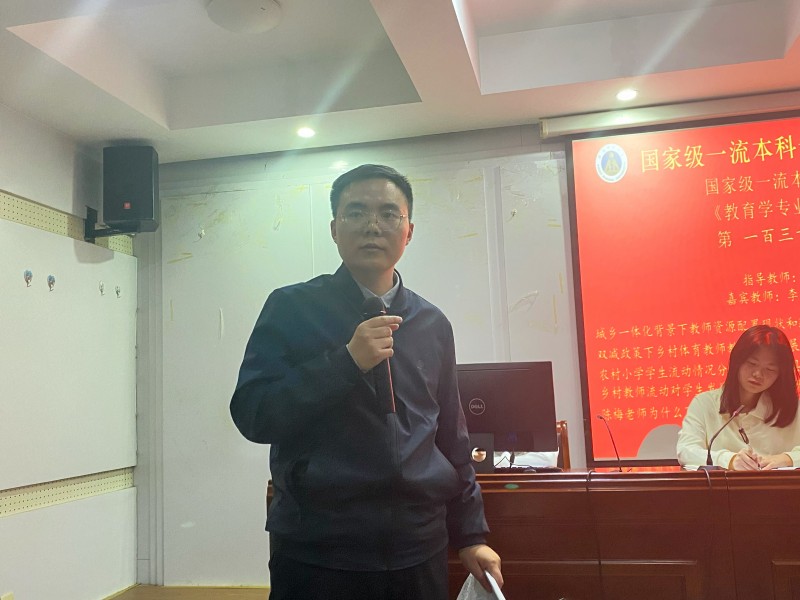 本网讯(文/谢雅雯 乔琳颖 图/谢雅雯)10月23日晚,在教育科学学院三楼学术交流中心,国家级一流本科专业建设点教育学专业顺利举办第一百三十八次专业论坛。莅临本次专业论坛的有小组指导教师周兴国以及嘉宾教师李宜江和位涛,20级、21级教育学专业全体本科生到场参加,并由20级教育学马祎曼担任主持人。