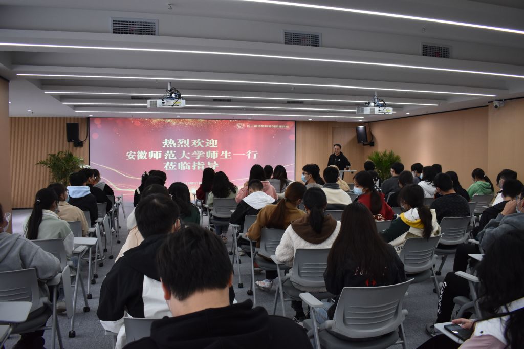 随后,师生共同前往六楼会议厅,黄博士为专业同学详细介绍了研究院创新发展的基本情况。研究院科研人员占比80.4%,目标将研究院建设成为先进技术研发中心、科技成果转移中心、高新技术产业孵化基地高端人才培养基地。为加强芜湖市实体经济发展作出重要贡献,同时其研发成果面向长三角,辐射全国。