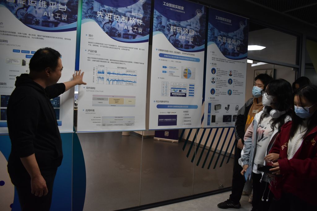 首先,负责接待的黄博士带领专业同学参观了实验室中心,并对研究院的重点研究项目加以介绍。研究院致力于建设多元协同、数据智能双螺旋驱动的智慧城市,以“AI+”为基础,推进AI+大数据、AI+基层治理、AI+工业、AI+医学病理等领域的应用创新,建设具有全国影响力的科研、人才和产业创新平台,以信息智能技术赋能城市治理现代化、支撑产业转型升级,助力经济社会高质量发展。研究方向持续聚焦大数据、人工智能技术的应用研发,推动AI+赋能百行百业。同学们共同参观了研究院四楼创新成果展厅,认真聆听了研究院在AI+大数据、AI+基层治理、AI+工业、AI+医学病理等领域的应用研发、成果转化和产业发展情况介绍,观看系统演示。