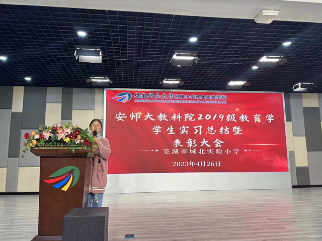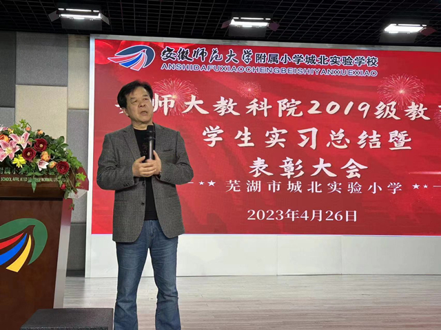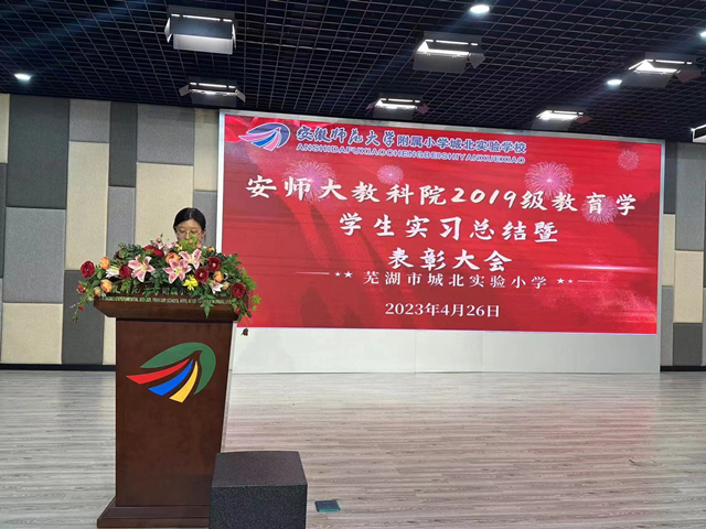 4月26日,教育科学学院2019级教育学专业的12名本科生圆满完成了在师大附小城北实验学校为期10周的教育实习任务。当日下午,教育学专业负责人徐赟、指导教师姚运标和胡微、师大附小城北实验学校校长严慧、以及师大附小城北实验学校全体教师参加实习生实习总结大会。
