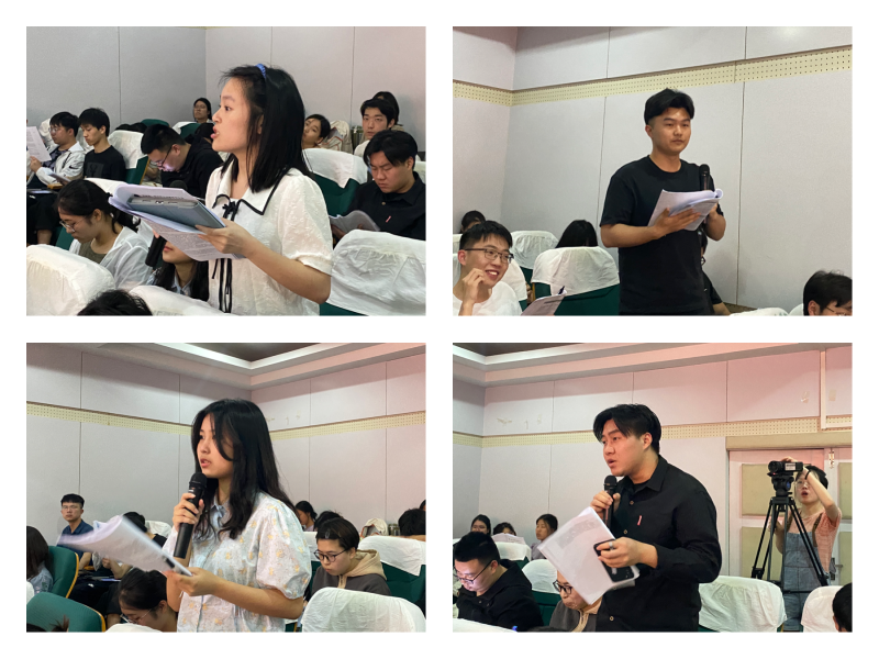 在集体讨论环节,同学们踊跃举手发言,围绕论坛主题提出困惑与建议,汇报人针对这些问题或建议作出具体解答和回应。