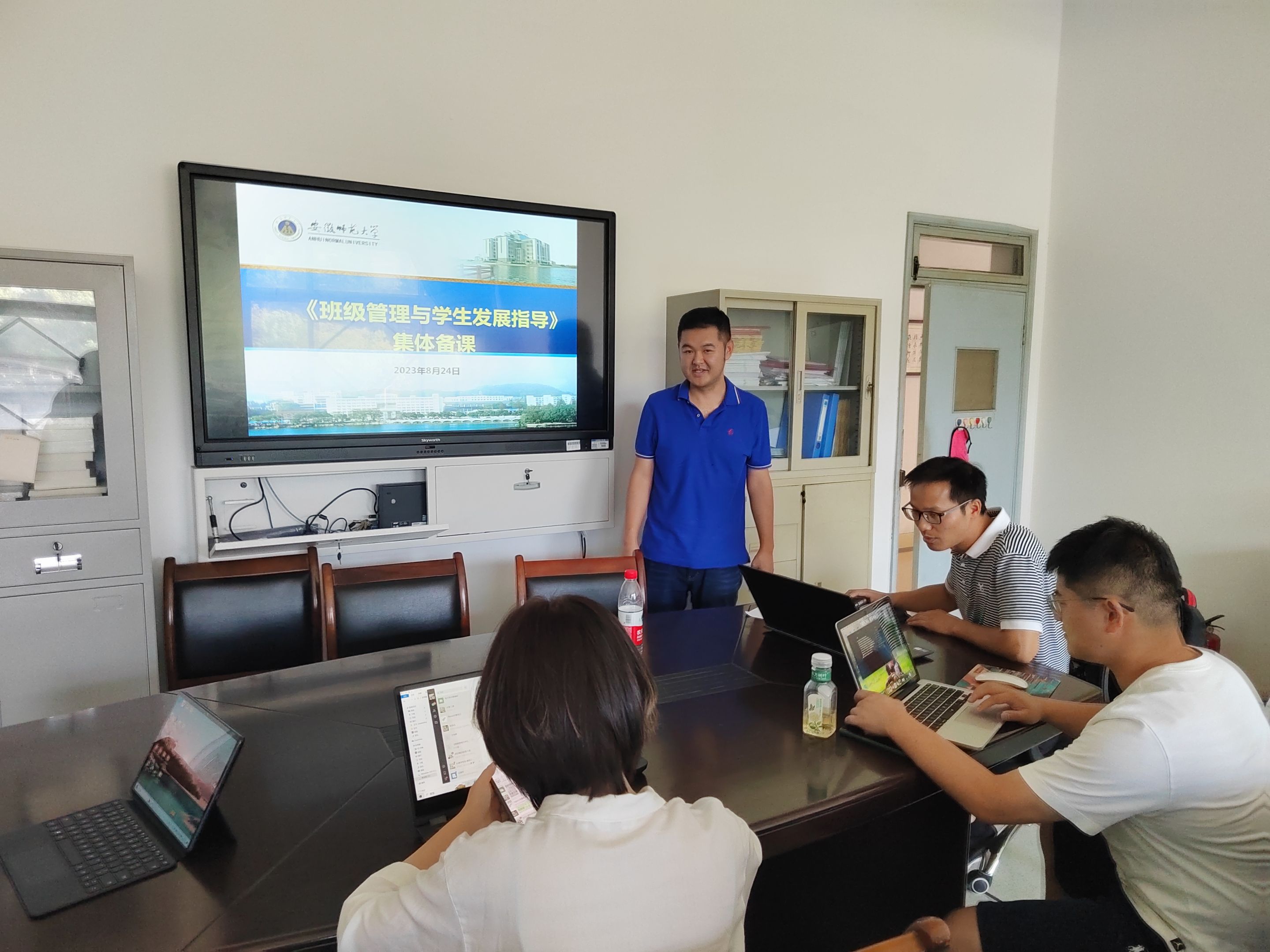 为更好地推进《班级管理与学生发展指导》课程建设,促进教学的实效性与规范性,提升教师教育课程教学质量,8月24日下午,《班级管理与学生发展指导》课程集体备课会在教育科学学院208举行。本学期《班级管理与学生发展指导》授课教师参加了本次活动,会议由课程负责人谢宇主持。
