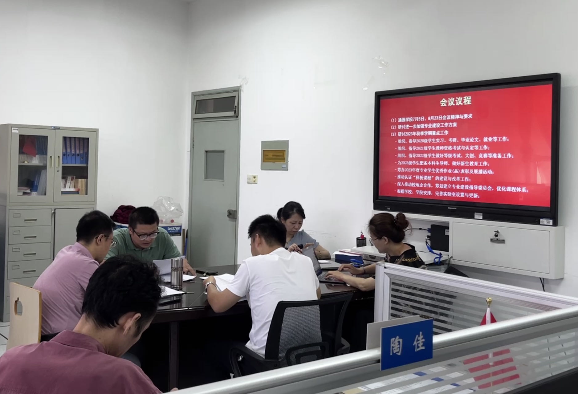 肖文首先传达了学院专业建设和课程建设会议、毕业生就业推进工作会会议精神与要求。参会教师紧密基于专业办学现状,根据专业认证专家反馈问题、毕业生调研及人才培养方案满意度调查结果等内容研讨了进一步加强专业建设工作方案。会议还研讨了2023年秋季学期的重点工作,明确了组织和指导2020级学生实习、考研、毕业论文、为2023级学生配备本科生导师、做好新生教育工作等新学期的重点工作。会议还对筹办2023年度专业学生优秀作品展播活动进行了商讨。