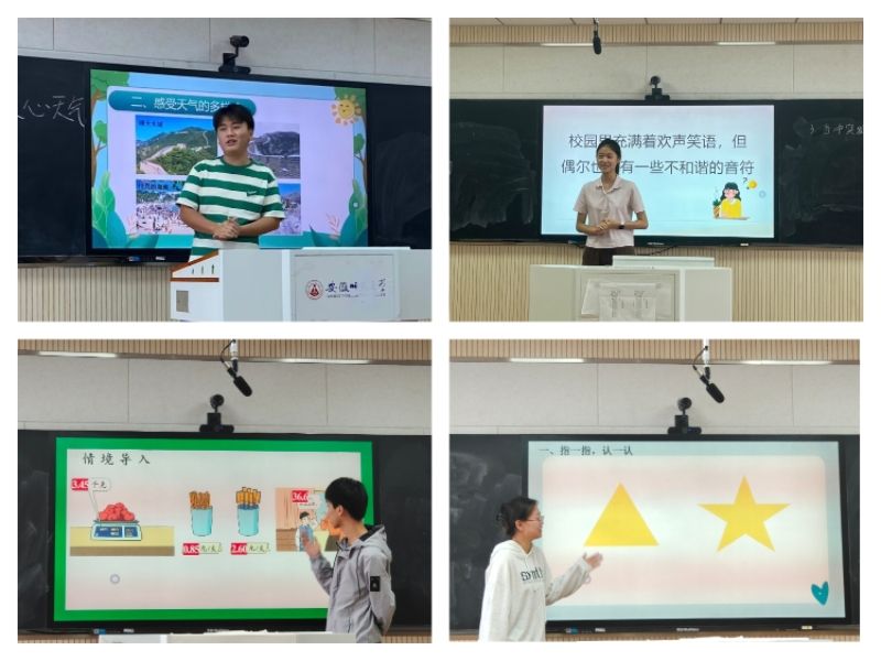 参赛选手赛前准备充分,根据自身情况选择了不同主题,涉及学科范围广泛,授课方式多样。如左方倩在讲授《总也倒不了的老屋》时,灵活运用卡通图案,并对生字词进行板书。张苏佳授课《角的初步认识》时语言风趣幽默,通过实物展示带领大家认识角。陈玉洁的全英文教学流畅且富有感情,并借助教具向评委老师呈现一堂生动趣味的英语课。在《小水滴的诉说》一课中,孙宇独具特色的语言表达,营造出活跃的课堂氛围。尹项哲以《课余生活我选择》为课题,从学生日常生活入手,引导学生科学安排课余生活。整场比赛过程中,选手们的教学思路清晰,教学内容丰富多彩,教学技能扎实牢固,板书美观合理,课堂各具特色,赢得了评委老师和在场同学们的一致喝彩。