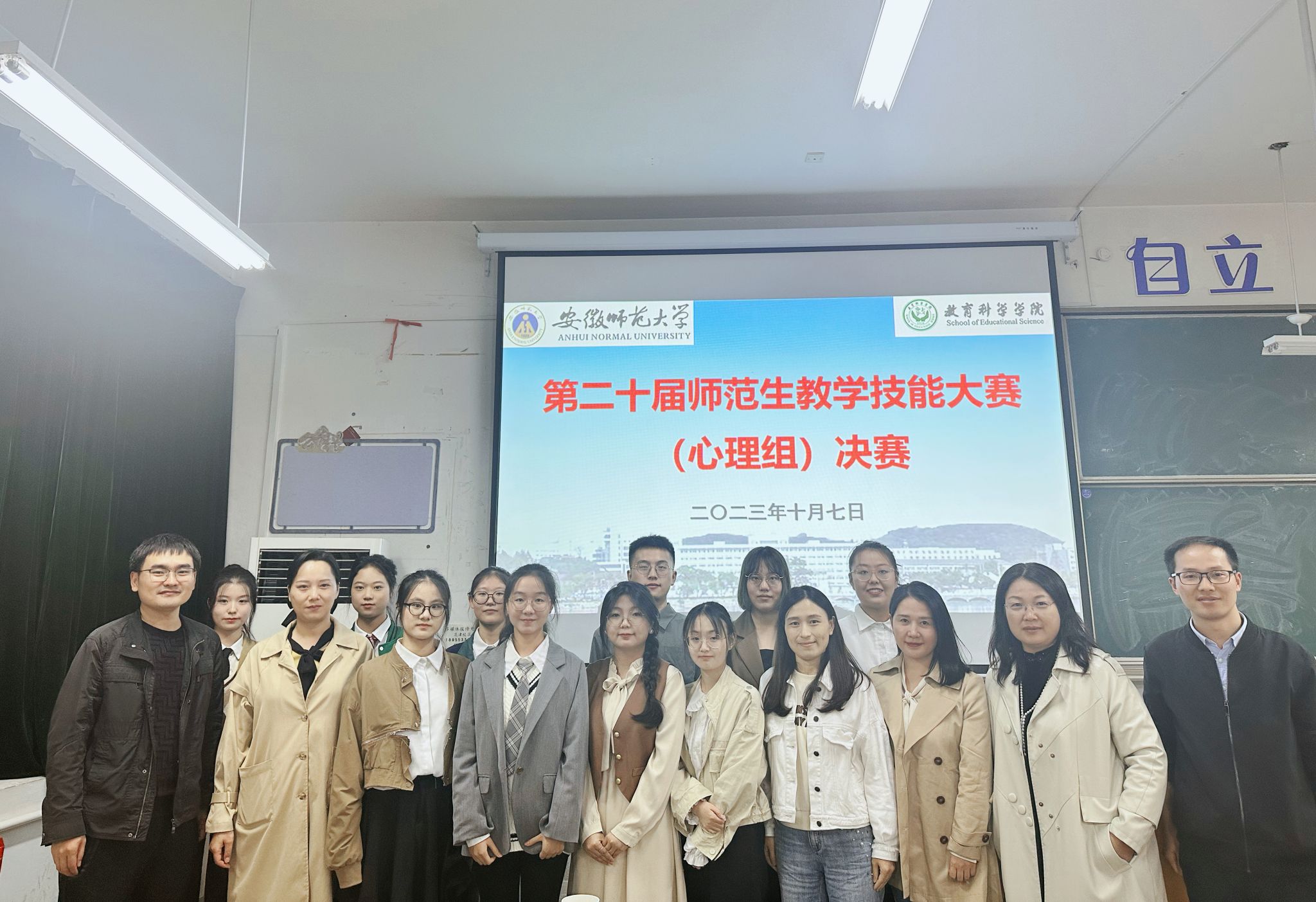 为了进一步提高心理学专业师范生教学技能水平,加强对师范生教育教学能力的培养,心理学专业于107日举行第二十届师范生教学技能大赛(心理组)决赛。大赛邀请了安师大附属中学德育副主任谢莉老师、安师大附外专职心理健康教师吴桂芬老师和芜湖市第二中学心理健康教师王影老师作为评委专家,由专业负责人王礼军老师主持,心理学专业部分教师和本科生共同参与。