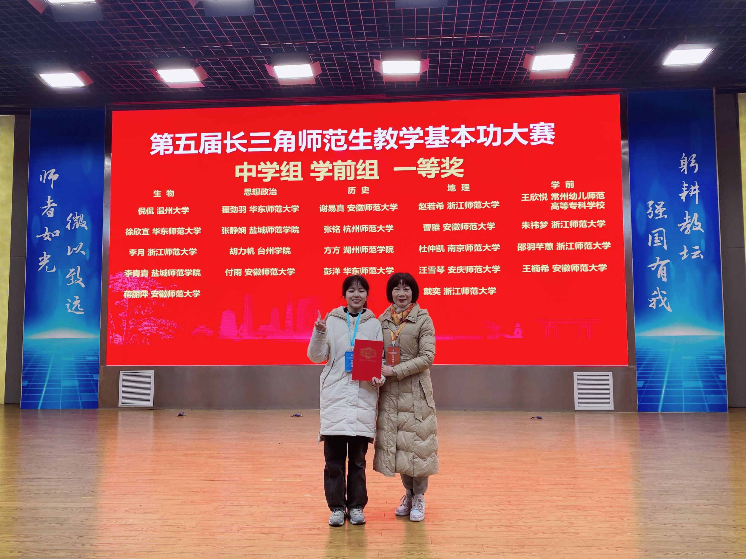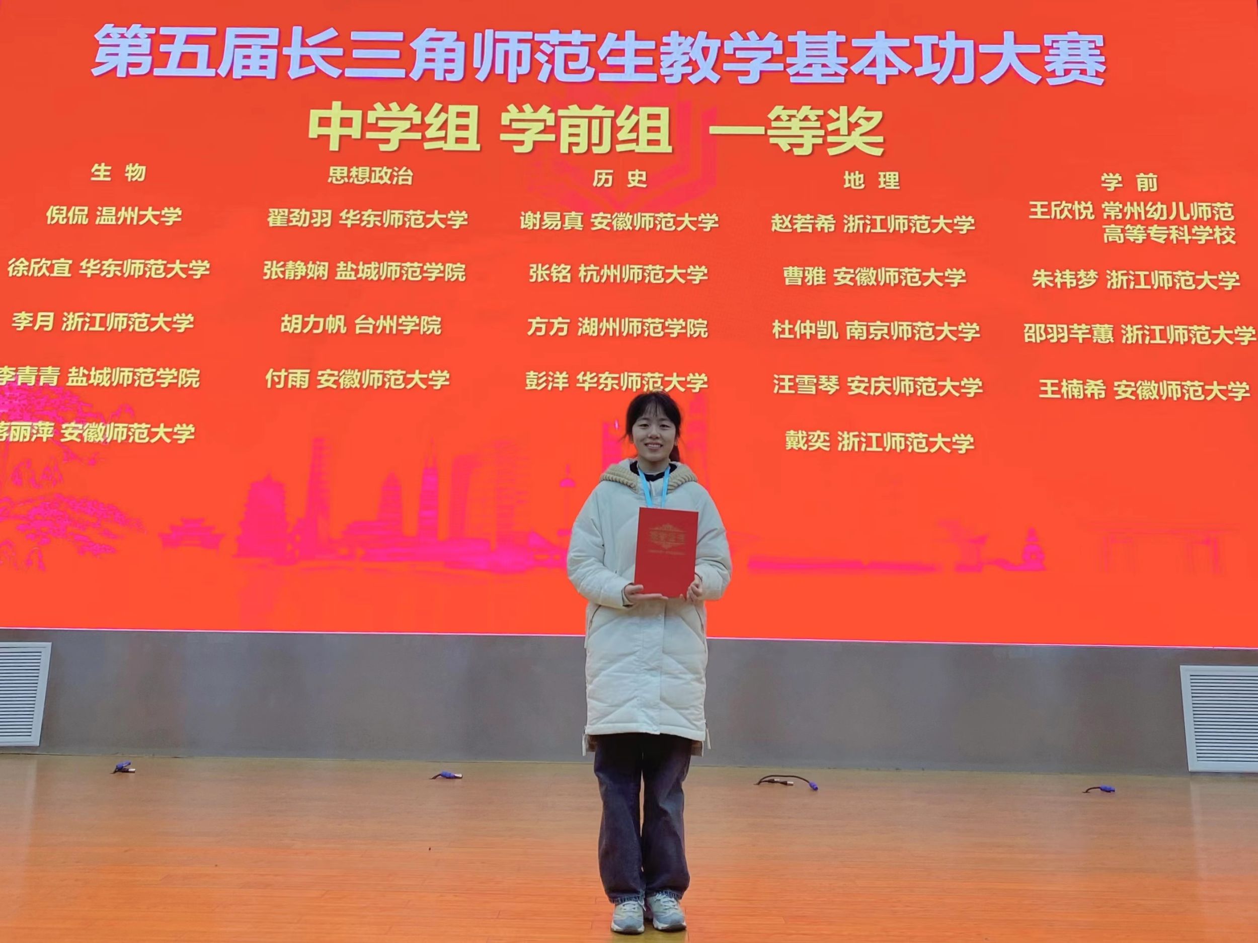 比赛由三省一市教育主管部门及长三角教师教育联盟六所成员单位所推荐的学校合计328人参赛,其中,学前组共17人。教育科学学院学前教育专业的王楠希同学在大赛中喜获学前组一等奖!