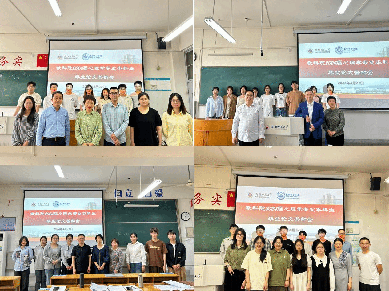 本次毕业论文答辩活动的顺利开展,得益于学院领导和教学办的殷切指导和专业负责人的悉心安排。答辩为教科学子提供了一个展示学习成果、总结学习收获的平台,检验了同学们掌握论文写作规范格式的水平,并使学生对自己的专业研究领域有了更加深刻的了解,同时也是对心理学专业教学环节、教学质量的全面检验。