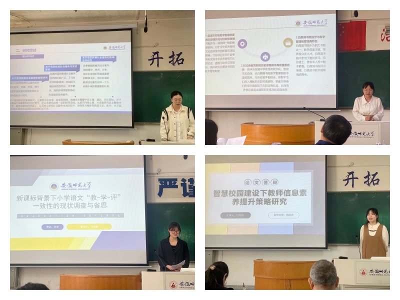 按照学校和学院毕业论文撰写安排的统一要求,本科生毕业论文工作经历论文选题、开题、调查、初稿、定稿、校外盲审、答辩等多个环节,教育学专业重视论文质量,加强过程管理,确保本科生毕业论文质量。为确保答辩评审公正客观,答辩教师与个人指导学生实施回避原则。答辩流程中,学生借助PPT展示论文的核心要点,阐述选题缘由、研究问题、概念界定、研究方法、研究过程、研究结论、研究不足等内容。答辩教师严把答辩质量关,秉持严谨认真的学术态度,在仔细审阅学生论文和听取汇报后,针对答辩学生的论文提出相关问题,由学生现场作出回答,并对论文存在的问题提出专业而中肯的建议。整个答辩过程严谨有序,学术氛围浓厚。答辩后,学生将进一步修改和完善毕业论文。根据指导老师、同行教师评审和现场答辩情况综合给出相应的答辩成绩。经过审议,纪升、谢雅雯、叶秀清、钱鑫、石金杰、纪岚、王可、江宇翼、张硕九位同学的毕业论文最终评定为优秀毕业论文。