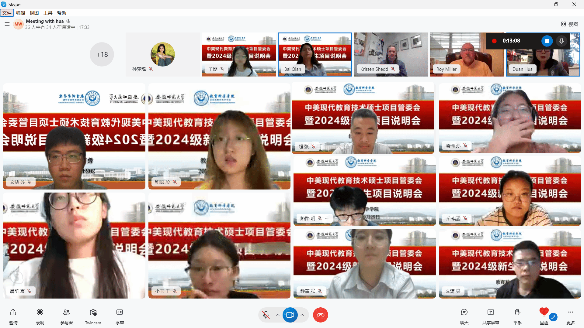 2024年9月25日晚上,安徽金年会联合美国约翰逊大学教育学院开展了现代教育技术(中美合作)硕士项目管委会暨2024年项目说明会,会议采用线上的方式进行。美国约翰逊大学有教育学院的院长Roy MIller、国际招生官Kriten Shedd以及国际关系主任段华参加了本次会议,安徽师范大学国际交流合作处的葛亚东副处长、教育科学学院的吴文涛副院长、国际交流合作处的外事秘书张超、现代教育技术(中美合作)学位点负责人白倩以及全体24级现代教育技术(中美合作)专业的研究生参加了本次会议。