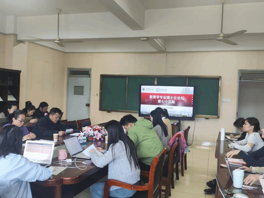 2024年10月20日下午,教育科学学院教育学专业第七十五期博士生论坛在教科院408会议室开展。本次论坛的指导教师为聂竹明教授和孙影教授,张迪、韩慧磊、龙庆、汪路艳四位博士生就自己近期的研究问题进行了汇报,我院在校的一、二年级博士生参加了本期论坛。