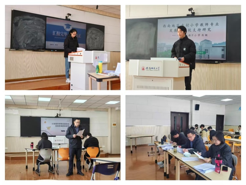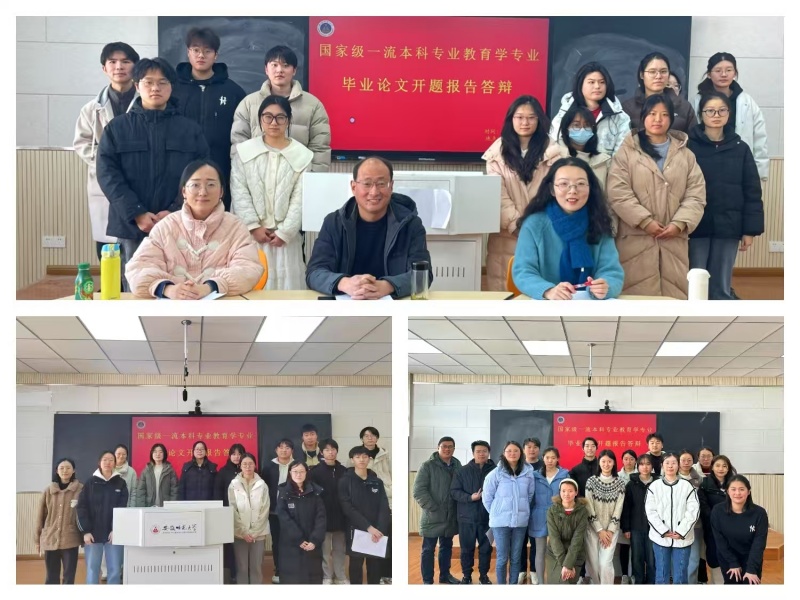 为进一步保障本科生毕业论文质量,加强对毕业论文选题和撰写过程的指导与管理,1月11日上午,教育科学学院国家级一流专业建设点教育学专业开展了2021级本科生毕业论文开题答辩工作。专业将41名同学分为三组,每组邀请3名答辩教师,分别于田家炳楼8606、8608、8610教室进行答辩。出席本次会议的答辩教师有吴支奎、徐赟、杨俊铨、江珊、陈元龙、金马妮、苏明明、陈晨、胡微共9位老师,2021级教育学专业全体本科生到场参加。