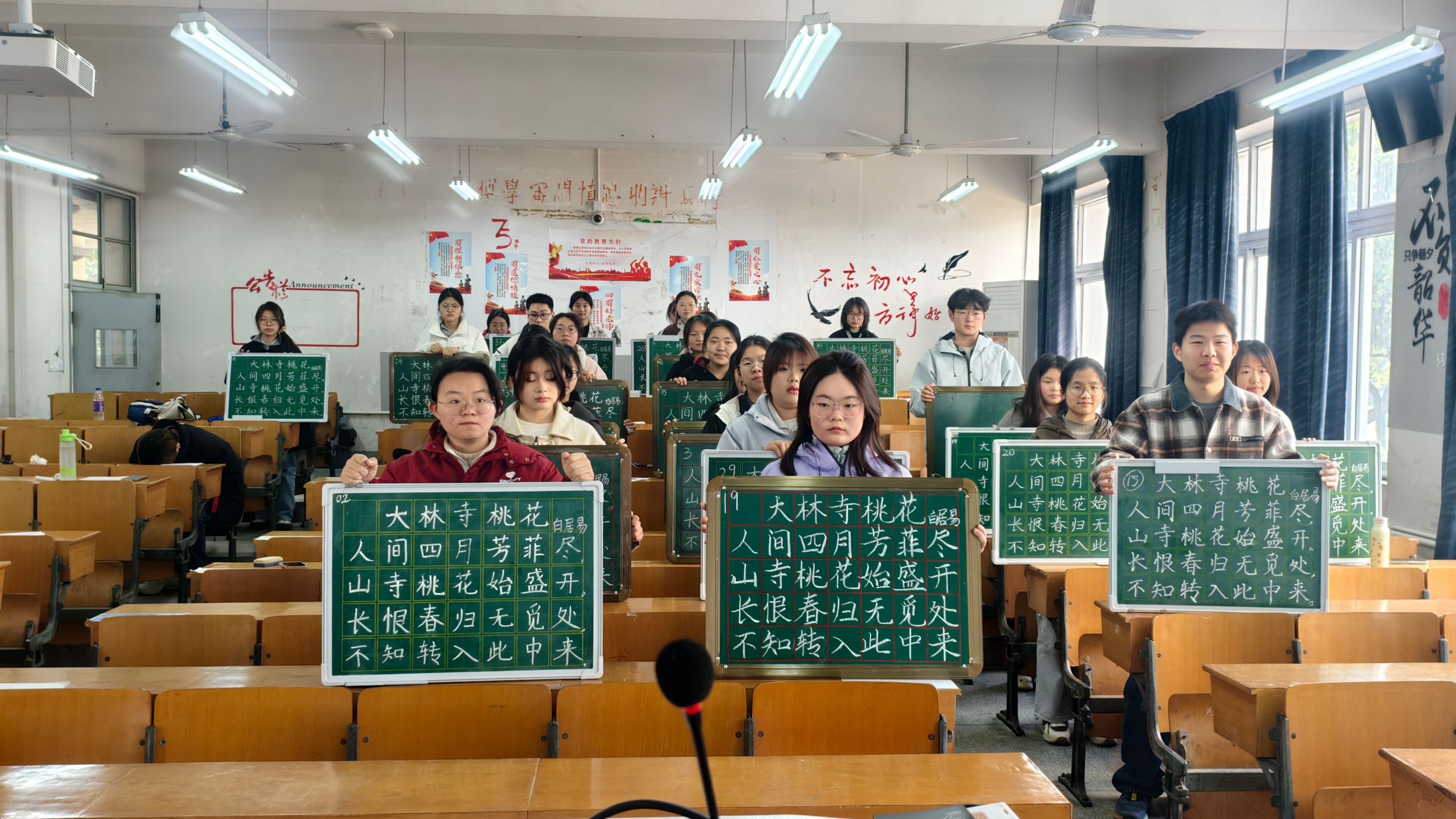 比赛共设钢笔字和粉笔字书写两个部分,要求20分钟内完成一篇150字左右的钢笔字书写和15分钟内完成一首七言绝句内容的粉笔字书写。